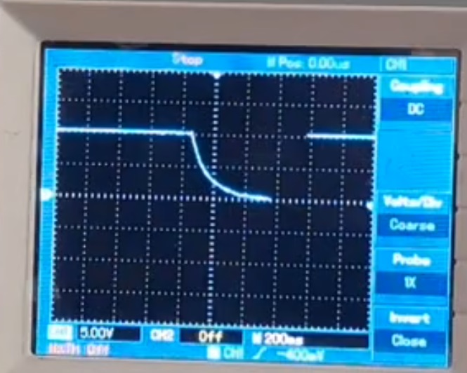 عند ظهور المنحنى كاملا نوقف المعاينة بالضغط على القفل RUN/STOP